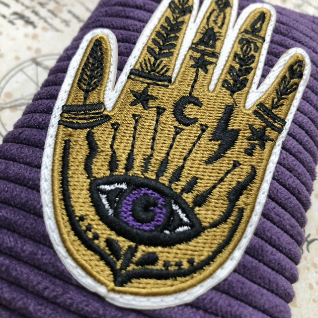 Sur un velours raffiné, cette amulette brodée représente une main dorée portant un œil violet, symbole puissant de clairvoyance, intuition et protection spirituelle. Doré comme la lumière sacrée et violet comme le chakra du troisième œil, ce talisman ésotérique unit l’action à la perception. L’énergie créative à la guidance intérieure, pour t’accompagner dans chaque pas de ton chemin spirituel
