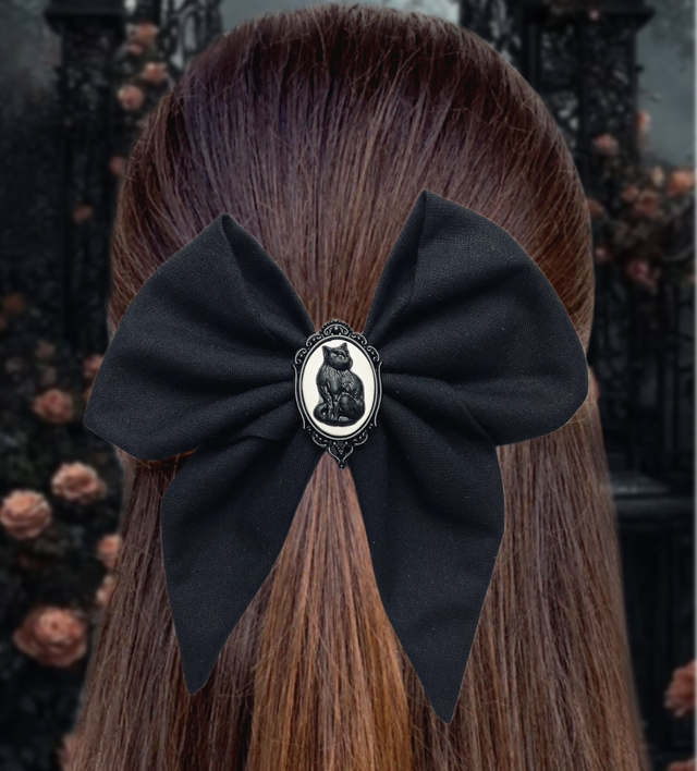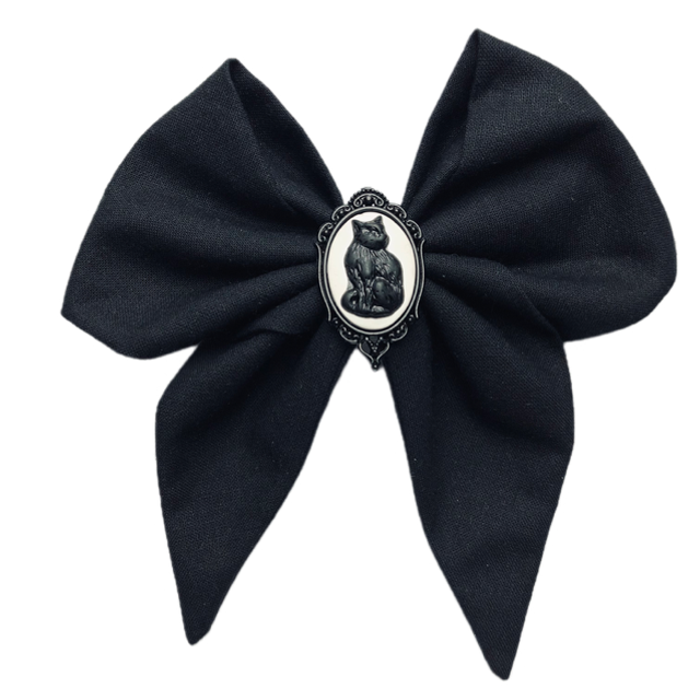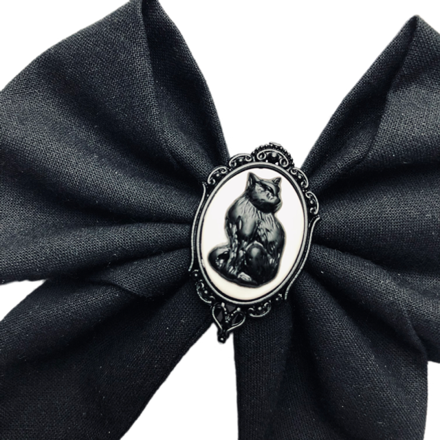 Véritable hommage aux familiers, compagnons des sorcières, cet accessoire associe élégance gothique et mystique. Le chat noir est symbole de magie et de protection