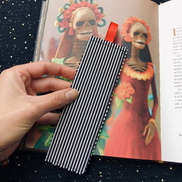 Offre à tes livres un compagnon coloré et unique, qui transforme chaque pause lecture en un petit voyage festif et artistique. Véritable hommage à la culture mexicaine, ce marque-page célèbre la vie, et la mémoire des morts. Réalisé en tissu rigidifié, il garde une souplesse agréable qui lui permet de se glisser facilement dans tes livres tout en restant résistant. Il accompagne chaque page de tes aventures littéraires avec style.