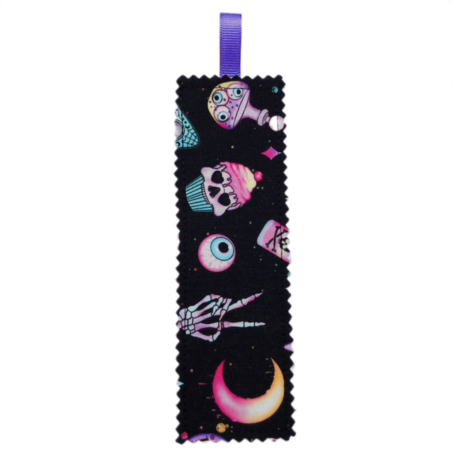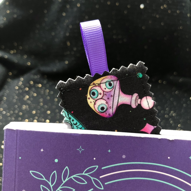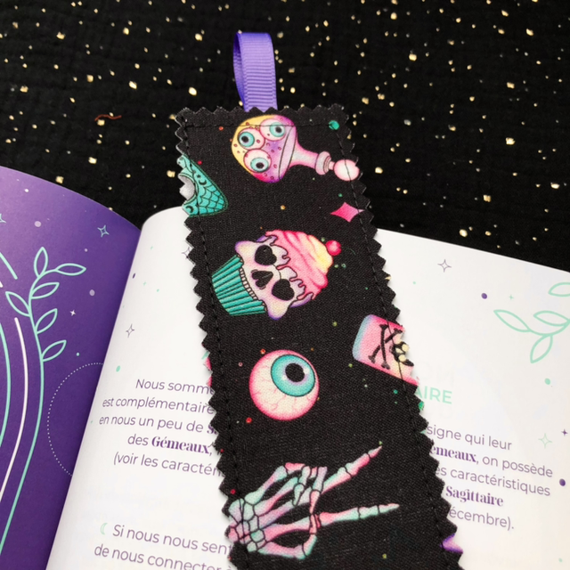 Ce marque-page artisanal au style witchy n’est pas qu’un simple accessoire : c’est un talisman pour tes lectures. Réalisé en tissu rigidifié, il garde une souplesse agréable qui lui permet de se glisser facilement dans tes livres tout en restant résistant.