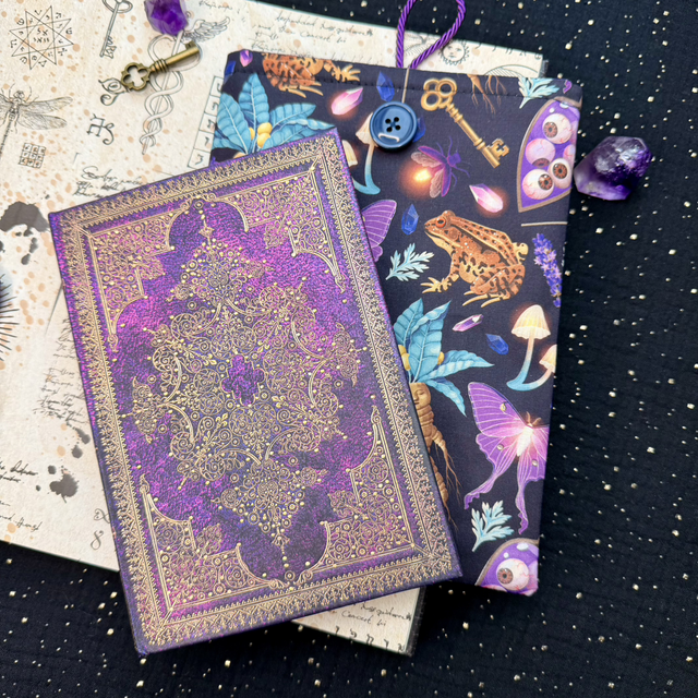 Cette pochette, enveloppe ton livre de poche avec délicatesse tout en lui conférant une aura mystérieuse. Un écrin idéal pour tes lectures ésotériques, tes romans fantastiques ou tes recueils secrets — à garder près de toi, comme un talisman littéraire.