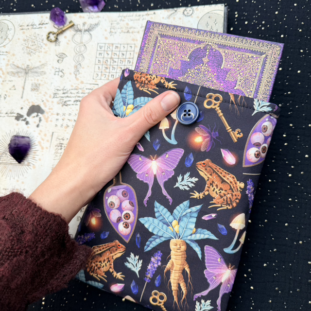 Plonge dans le mystère des anciens jardins et des rituels oubliés avec cette pochette à livre de poche « Mandragore ». Son motif évoque la racine légendaire, aux formes presque humaines, symbole de magie. Chaque livre glissé à l’intérieur devient un grimoire, protégé des regards curieux et des éléments.
