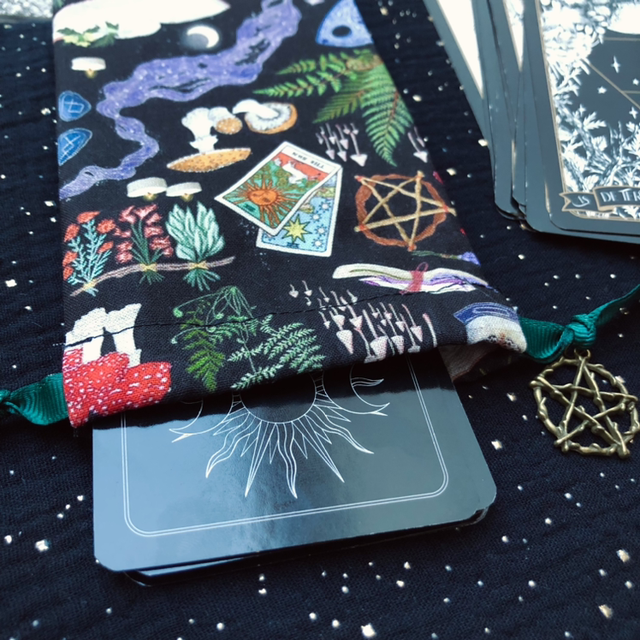Glisse-y ton jeu de cartes pour l’emmener en rituel, utilise-le comme écrin pour tes pierres ou encore comme pochette witchy pour tes petits trésors mystiques.