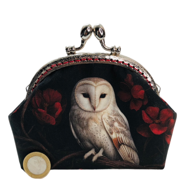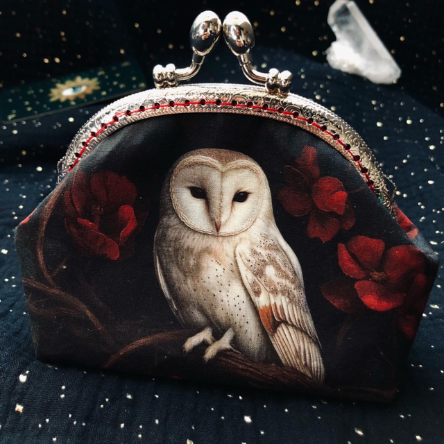 Ce porte-monnaie artisanal met en lumière une chouette blanche, symbole d’intuition et de sagesse, veillant sur tes richesses comme une protectrice nocturne. Elle se tient au cœur d’un écrin orné de coquelicots flamboyants – fleurs délicates, associées depuis toujours à la chance.