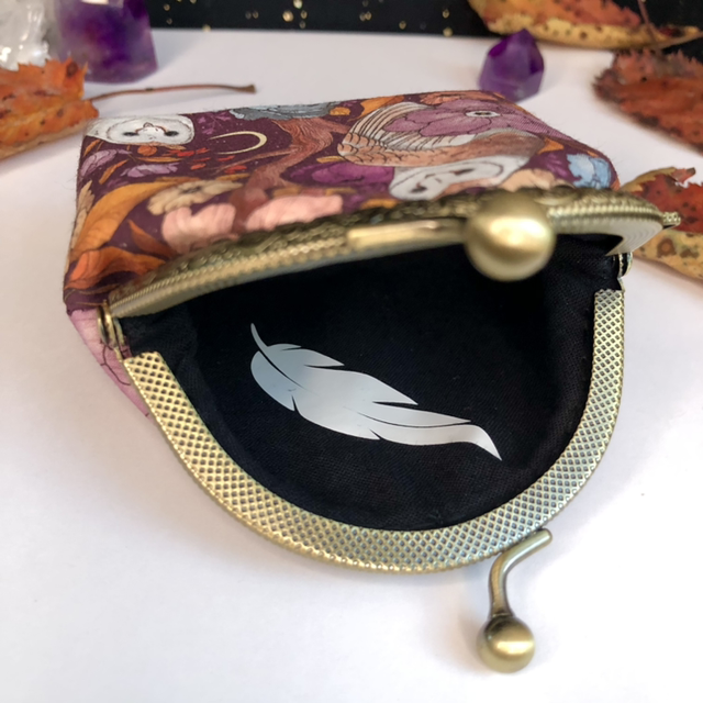 Compact et pratique (≈ 10 × 10 cm), ce porte-monnaie ne prend pas de place. Il est parfait pour accueillir tes pièces, billets ou petits trésors de cœur. Il t’accompagne sans encombre dans ton sac ou ta poche, tout en diffusant une énergie mystique autour de toi.