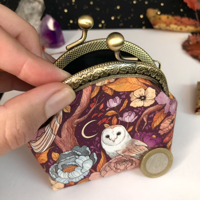 Emporte avec toi un petit talisman du quotidien, aussi pratique qu’ensorcelant — ce porte-monnaie célèbre la chouette, messagère nocturne associée à la sagesse, à l’intuition et à la protection silencieuse.