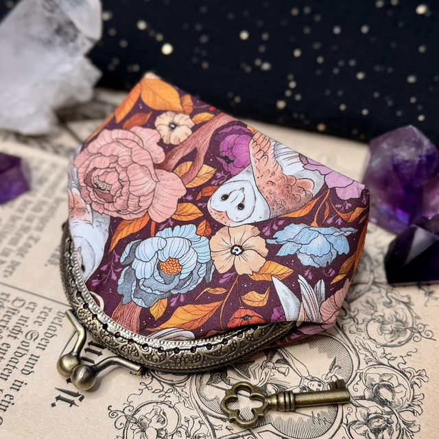 Emporte avec toi un petit talisman du quotidien, aussi pratique qu’ensorcelant — ce porte-monnaie célèbre la chouette, messagère nocturne associée à la sagesse, à l’intuition et à la protection silencieuse.