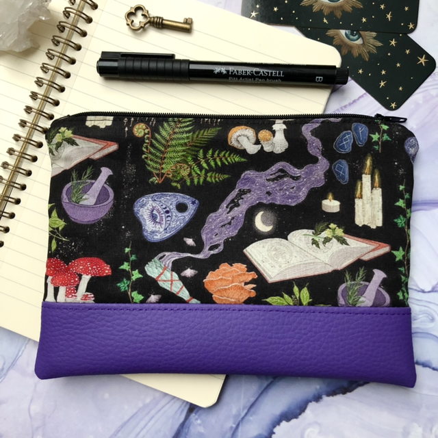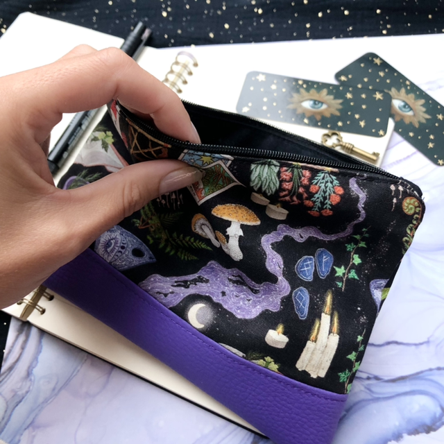 Polyvalente, elle peut accueillir tes cartes de tarot, tes cristaux, tes stylos de rituel, ton maquillage witchy ou tes petits talismans de voyage. Elle protège tes trésors, t’accompagne dans tes pratiques spirituelles et sublime ton quotidien d’une aura ésotérique unique.
