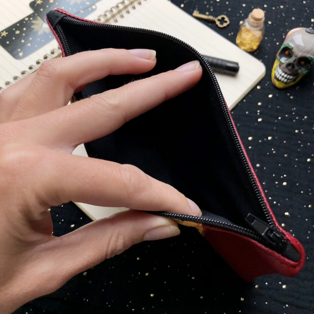 Confectionnée en simili cuir, cette trousse unique allie élégance et résistance. Sa doublure intérieure assure une finition soignée et durable, parfaite pour ranger tes accessoires, maquillage ou talismans avec style et protection.