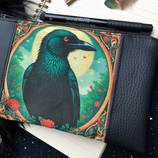Laisse la force du corbeau veiller sur toi avec cette trousse, une création empreinte de mystère et d’élégance.
