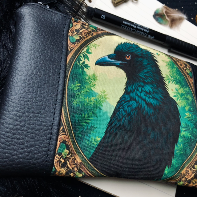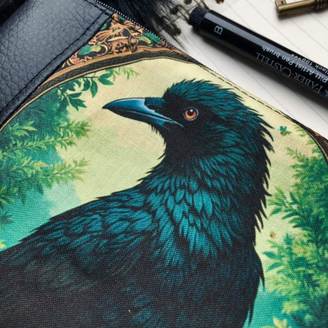 Laisse la force du corbeau veiller sur toi avec cette trousse, une création empreinte de mystère et d’élégance.