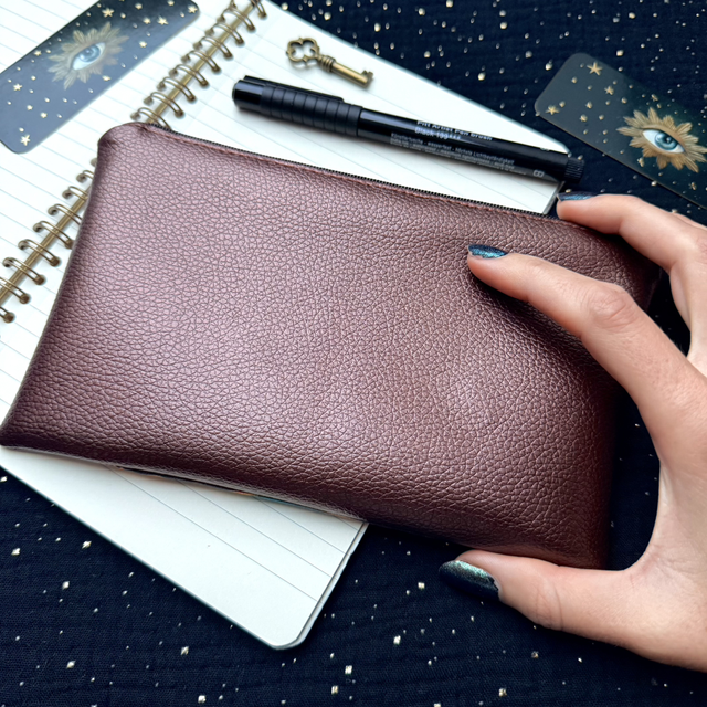 Chaque pièce est faite main, en simili cuir, assurant une qualité artisanale et une unicité qui fait de chaque trousse un talisman personnel. Que ce soit pour toi même ou en cadeau, elle apportera une touche mystique et pratique à ton quotidien.