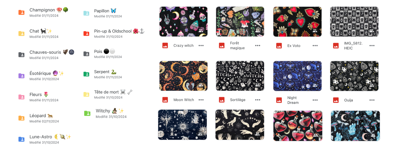 Choisi parmi une vaste sélection de tissus, avec plus d'une centaine de références disponibles. Chaque tissu est unique et il est essentiel de sélectionner celui qui convient le mieux à ton projet. En cas de doute ou interrogation tu peux me contacter pour me poser tes questions.